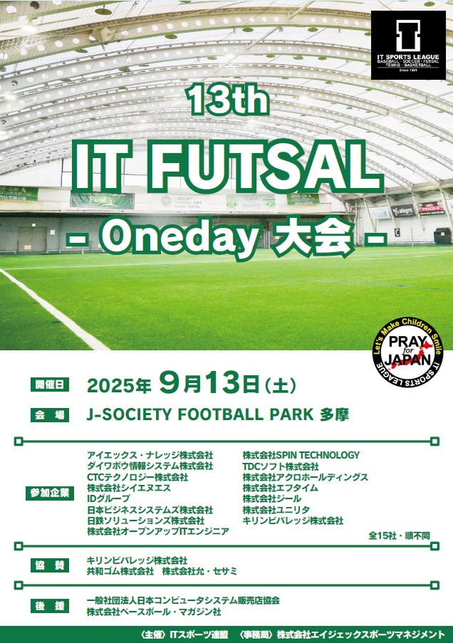 2025年9月13日(土)に第13回 IT FUTSAL -Oneday大会-(主催:ITスポーツ連盟)に参加しました。