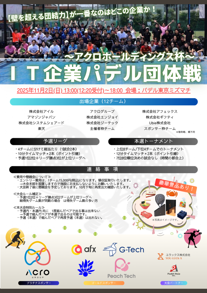 アクロホールディングス杯 IT企業パデル団体戦を開催します!